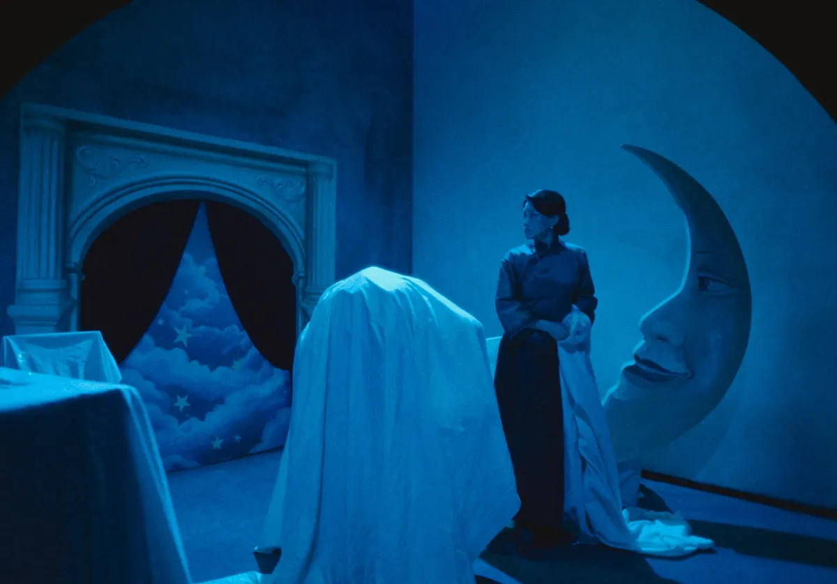 Résurrection se lit comme une méditation sensorielle. Il ne prétend pas saisir le réel, il en montre plutôt la fatigue, dans un futur proche où cette femme sans nom (Shu Qi) se réveille dans un monde post-apocalyptique et découvre le corps, peut-être androïde, du Rêvoleur (Jackson Yee). Elle lui réapprend peu à peu à retrouver ses sens, et les cinq contes se présentent comme des visions successives : autant d’époques du cinéma traversées comme des souvenirs persistants.