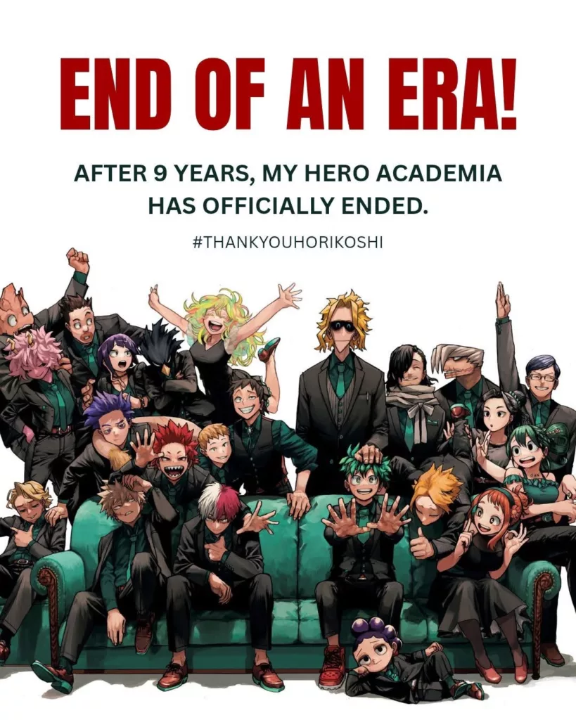 L’anime My Hero Academia s’est terminé avec la diffusion du dernier épisode, le 170ᵉ épisode ! Après neuf années de diffusion depuis le 3 avril 2016, on doit remercier le studio Bones pour cette magnifique adaptation de l’œuvre inoubliable de Kohei Horikoshi, qui va traverser des générations dans l’histoire de l’animation.