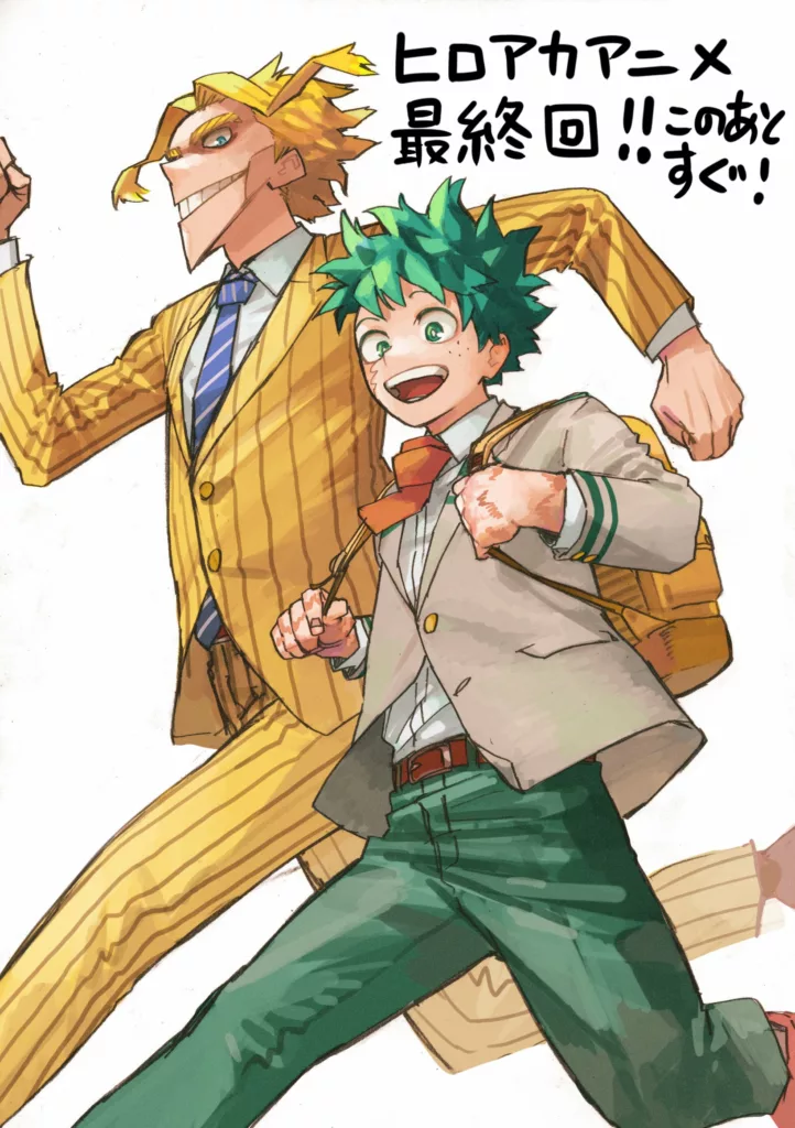 La série se clôt sur Deku courant aux côtés des autres, non plus comme « l’élu », mais comme un héros parmi les autres. Il s’agit d’un dernier geste héroïque. La phrase finale résonne autant comme une conclusion que comme une boucle parfaite :