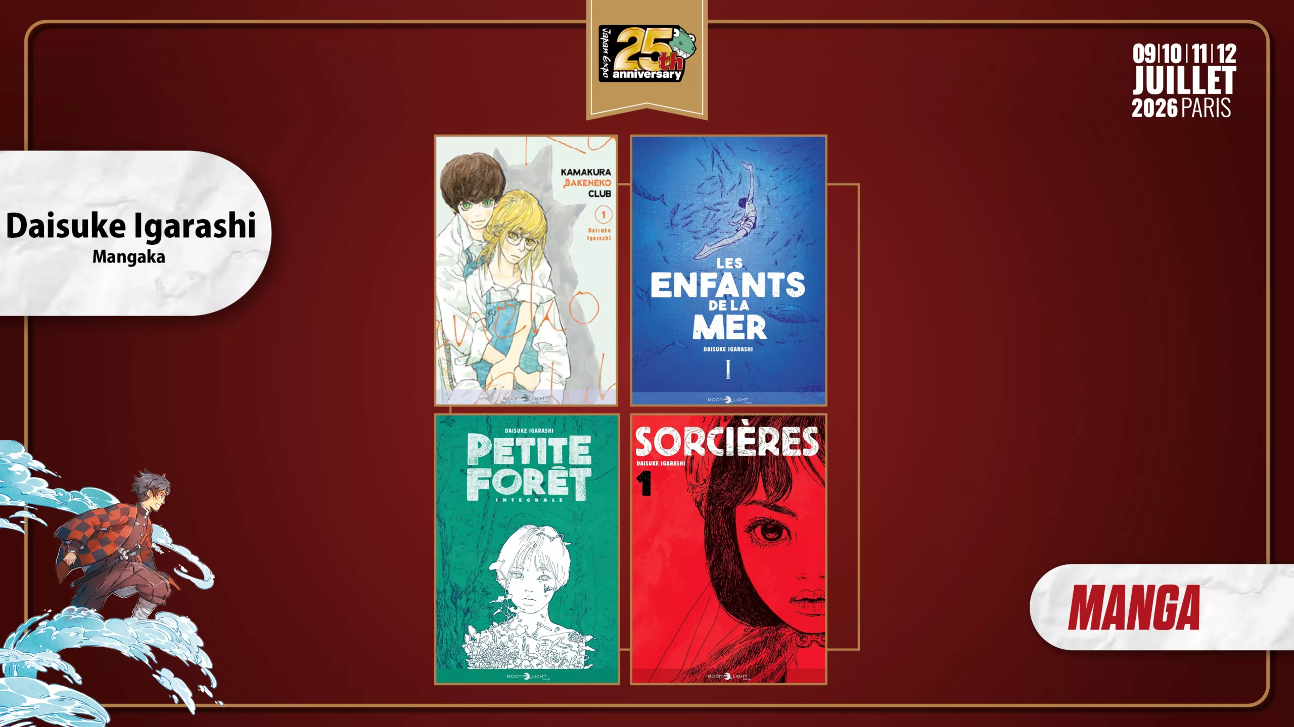 Daisuke Igarashi sera aussi présent. Il est l’auteur des « Enfants de la Mer », un récit portée par une sensibilité rare. Mais aussi de « Petite foret » et « sorcière ». C’est un mangaka japonais au trait d’une rare poésie, reconnu pour ses récits contemplatifs sur la nature et l’exploration. J’avais rédigé mon avis sur l’adaptation des enfants de la Mer en film d’animation : https://japoncinema.com/critique-du-film-les-enfants-de-la-mer